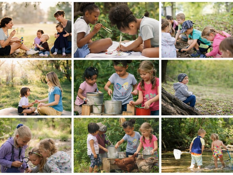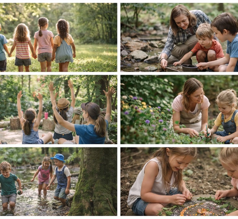 and self-directed exploration.Hands dive into soil, clay, wood, and color,