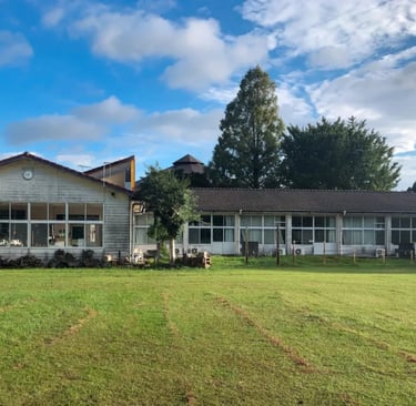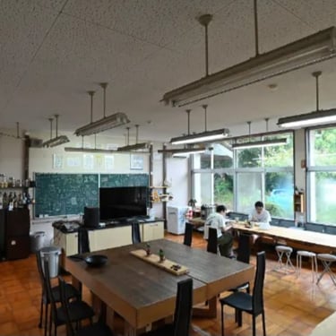 The retreat takes place in a former Japanese school building thoughtfully transformed into a countryside guesthouse, surrounded by nature and quiet.