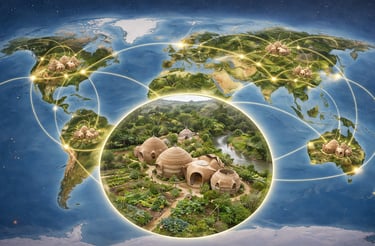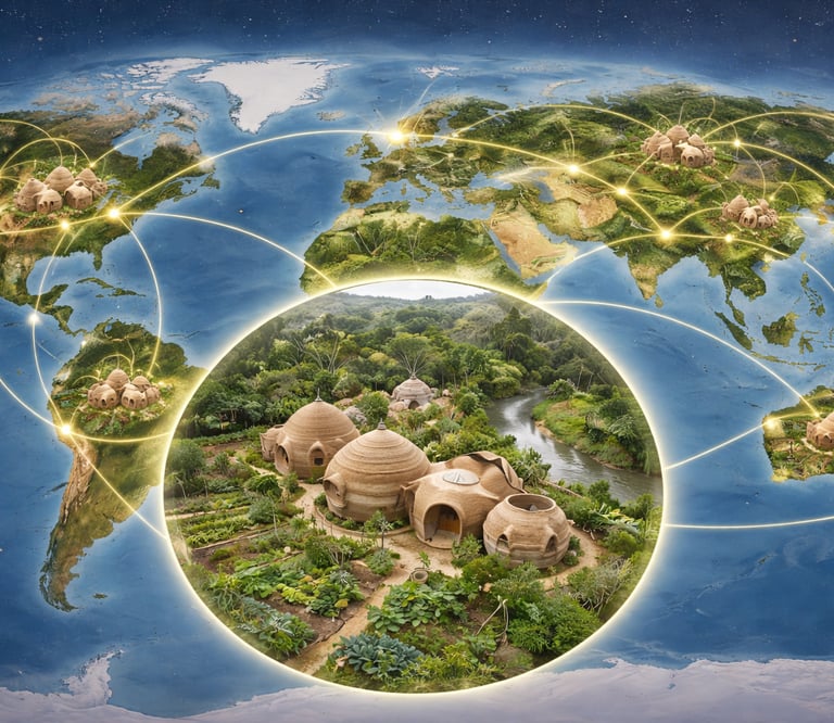 Different villages may develop different areas of focus — such as education, regenerative tourism, food systems, technology, or creative production — forming a distributed cluster economy.