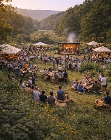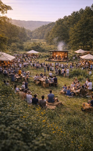 Small-scale ecological lodging and curated retreat experiences (often 7–10 days) supporting learning, rest, and cultural exchange.Food Systems & Community Kitchens